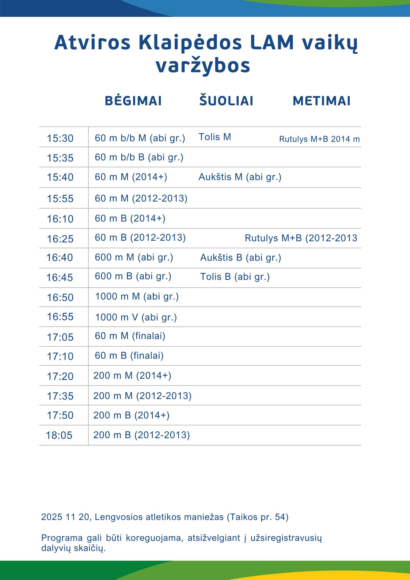 lapkričio 20 Atviros Klaipėdos lengvosios atletikos mokyklos vaikų varžybos Nuostatai Pakoreguota programa