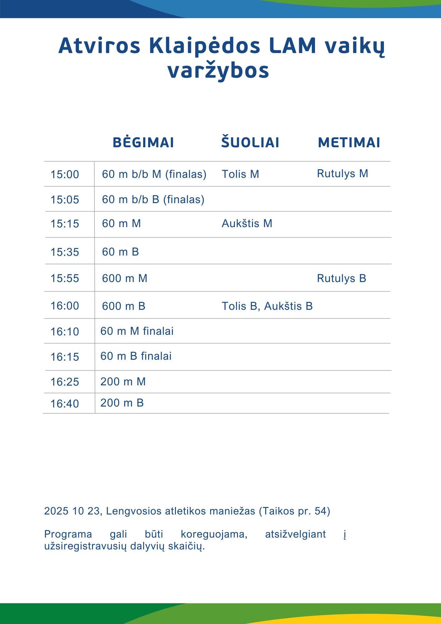 spalio 23 Atviros Klaipėdos miesto lengvosios atletikos mokyklos vaikų gim. 2012-2013 m. ir 2014 m. ir jaunesnių varžybos Nuostatai Programa